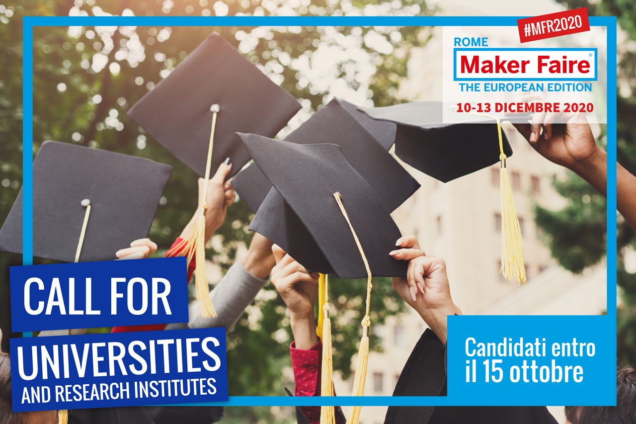 Attraverso la “Call for Universities and Research Institutes 2020”, Maker Faire Rome intende mettere in risalto il grande lavoro e i migliori progetti delle Università statali e degli Istituti di ricerca pubblici sul fronte dell'innovazione e della sostenibilità.